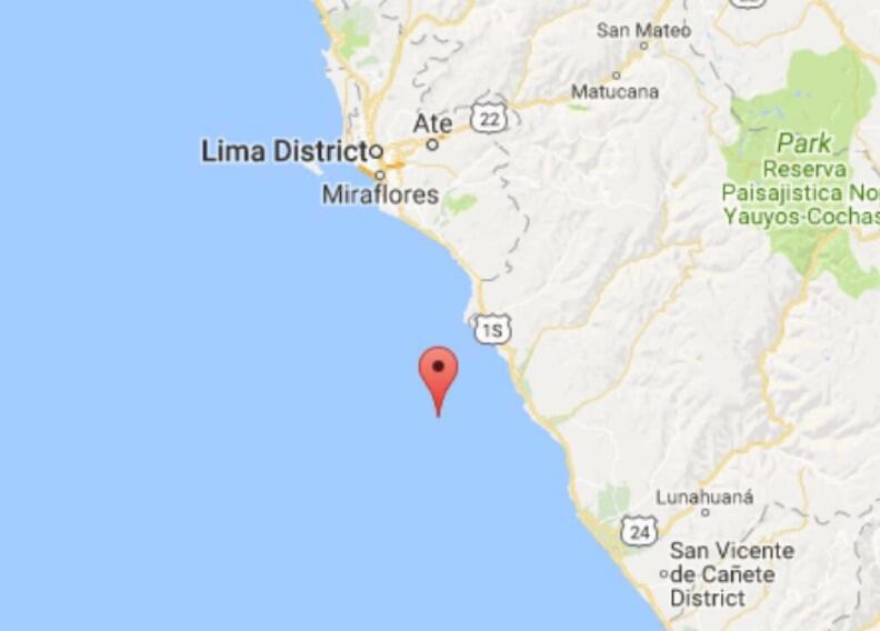 El movimiento telúrico ocurrió a las 06:07 (hora local) del jueves, y tuvo su epicentro en el pueblo de Mala, 88 kilómetros al sur de Lima, a una profundidad de 63 kilómetros.