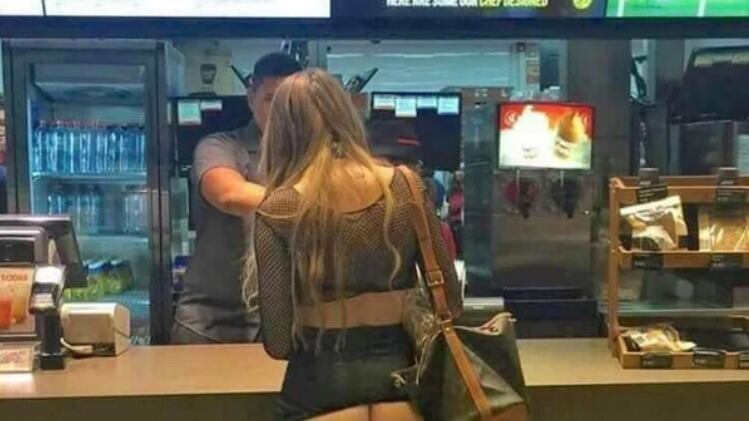 En la imagen, del pasado 20 de mayo, una turista británica, muy poco consciente de su apariencia, ingresó a un local de hamburguesas.