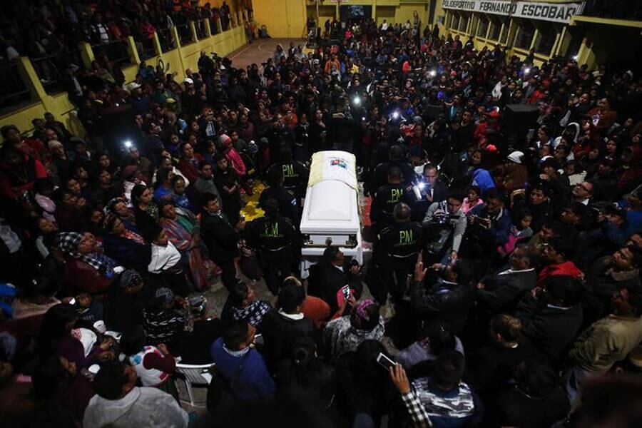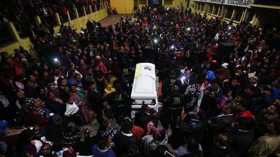 Las exequias de la migrante guatemalteca dieron inicio en el polideportivo de San Juan Ostuncalco, donde se le rindió un homenaje póstumo al que llegaron cientos de personas. Los pobladores mostraron sus condolencias a sus familiares, pero también gritaron varias consignas, "¡justicia, justicia!", fue una de ellas.