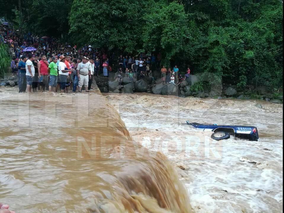 Según describieron los testigos, el accidente fue provocado por la crecida del río Petacalapa, el cual cubrió un pequeño puente que comunica a aldea El Naranjo con la cabecera departamental.