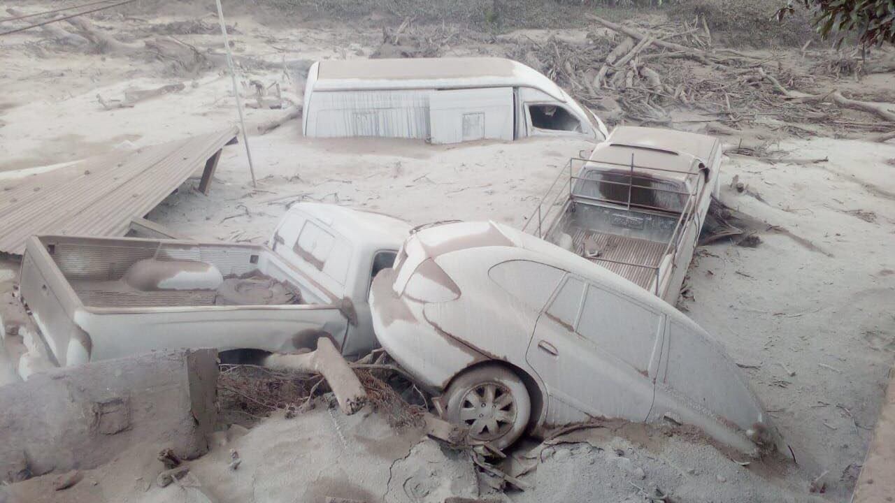 El fenómeno dejó víctimas mortales y en las fotografías que se encuentran en redes sociales se pueden ver cuerpos humanos parcialmente enterrados en ceniza volcánica.