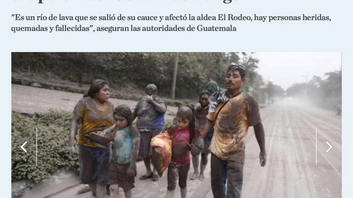 “Volcán de Fuego entra en erupción en Guatemala: al menos 7 muertos en El Rodeo”. “Un flujo de material volcánico golpeó una casa en la comunidad de El Rodeo, lo que dejó cuatro muertos. Los cuerpos de otras tres personas fueron encontrados en una barranca”, fue la información de “BBC News Mundo”.