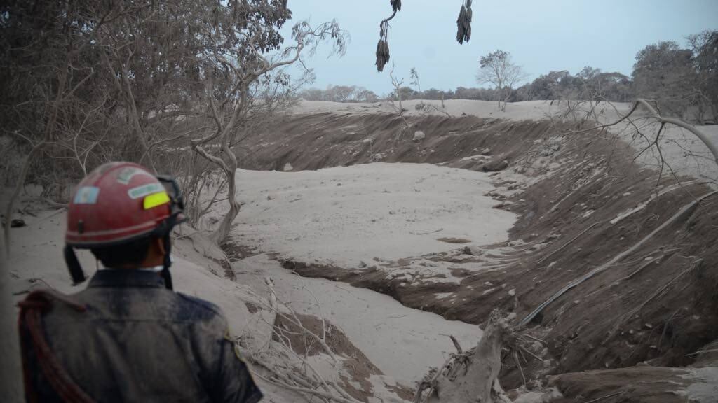 Los rescatistas se movilizan entre la desolación por las casas destruidas y plantaciones completamente calcinadas por la furia que desató el volcán, de 3,763 metros de altura y a 35 kilómetros al suroeste de la capital.