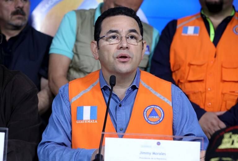 El presidente Jimmy Morales visitó este lunes las áreas afectadas por la erupción del volcán de Fuego, que dejó al menos 33 personas fallecidas, y se presentó al Centro de Operaciones de Emergencias (COE) que fue instalado en Escuintla.