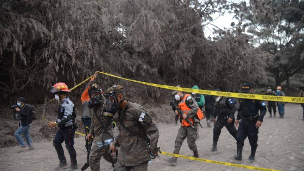 Los rescatistas llevan a cabo las acciones en las áreas en donde la ceniza y los flujos piroclásticos cubrieron las calles y viviendas y dejaron atrapadas a varias personas.