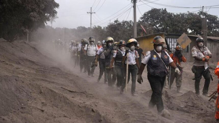Los rescatistas trabajan sin descanso desde la tarde del domingo, cuando las fuertes explosiones del volcán de Fuego desembocaron en flujos de material piroclástico que prácticamente, sepultaron a casi toda la comunidad de El Rodeo, el área más afectada.