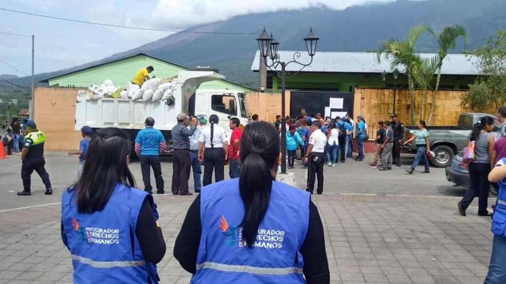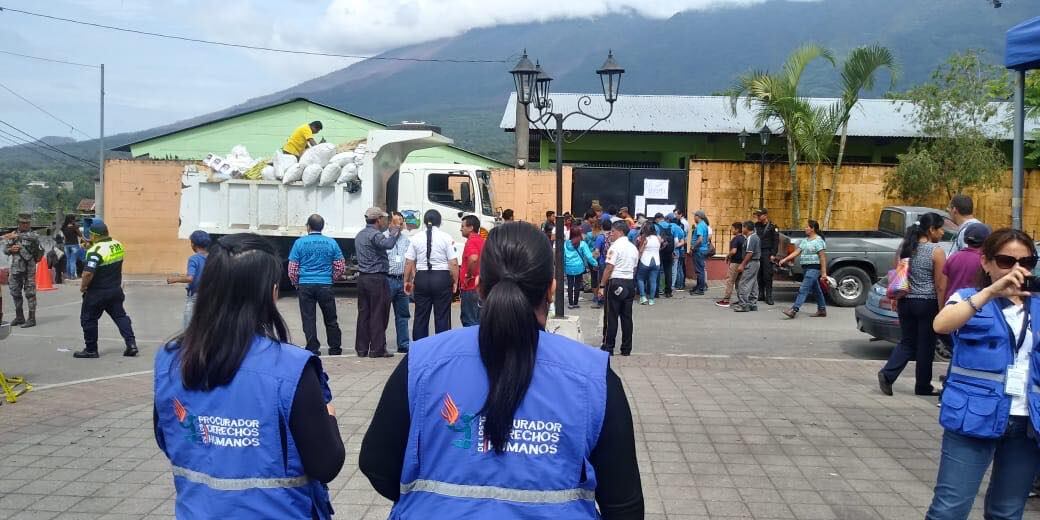 Delegados de la Procuraduría de los Derechos Humanos (PDH) llegaron este 9 de junio a San Jan Alotenango, Sacatepéquez, para verificar el trabajo que se realiza en favor de los damnificados por la erupción del volcán de Fuego.