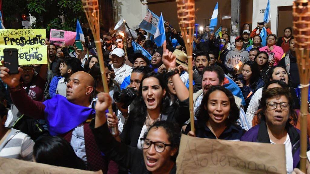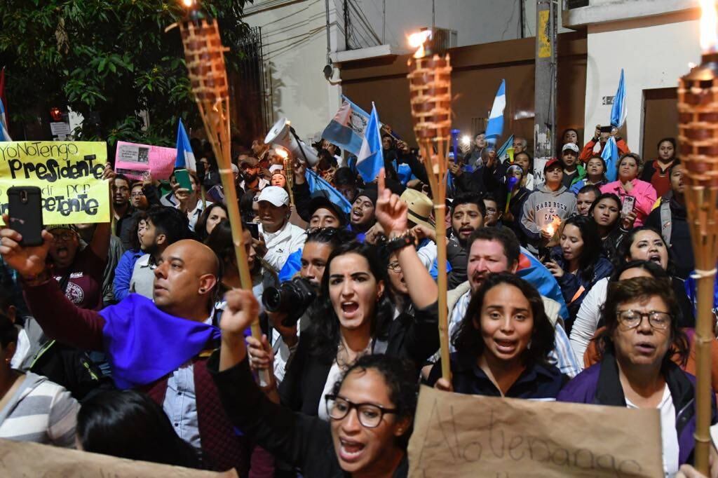 Los manifestantes pedían la renuncia del presidente Jimmy Morales y la canciller Sandra Jovel por la obstrucción del ingreso de ayuda desde el extranjero.