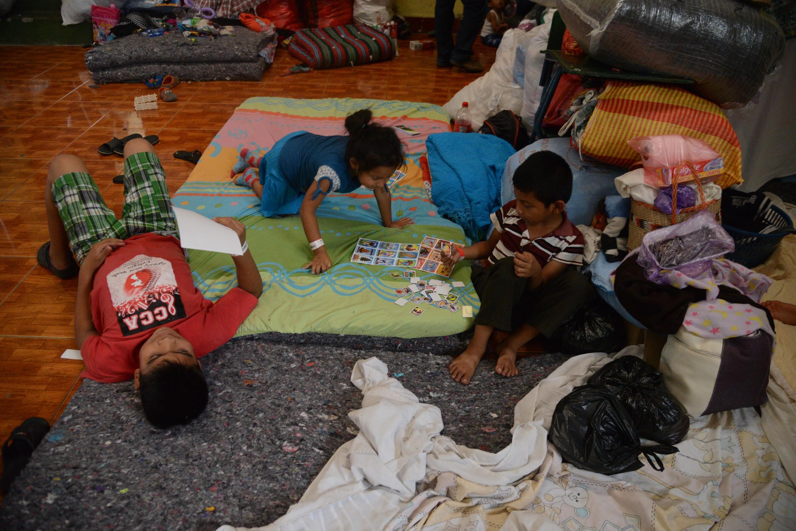 Mientras los niños juegan pelota y corretean en el polideportivo del instituto, las madres cuidan a los más pequeños. “No sabemos hasta cuándo estaremos acá, no que apoyo iremos a recibir o si podremos regresar a nuestra casa”, dice Berta Candelaria Herrera, de 34 años, mientras carga en brazos a su hijo de dos años a quien no logra dormir.