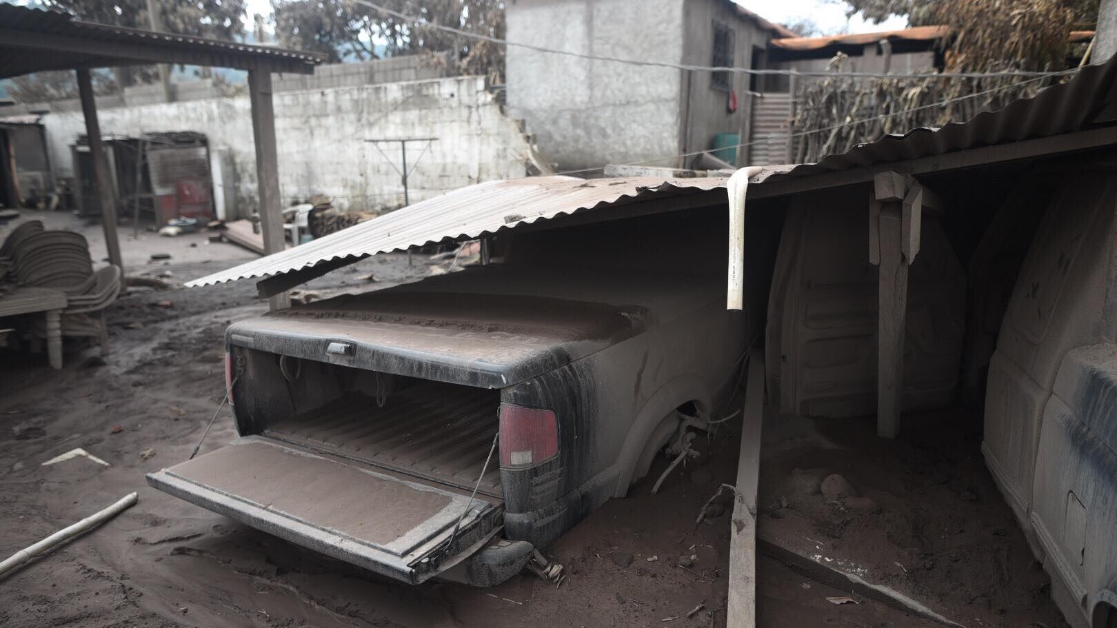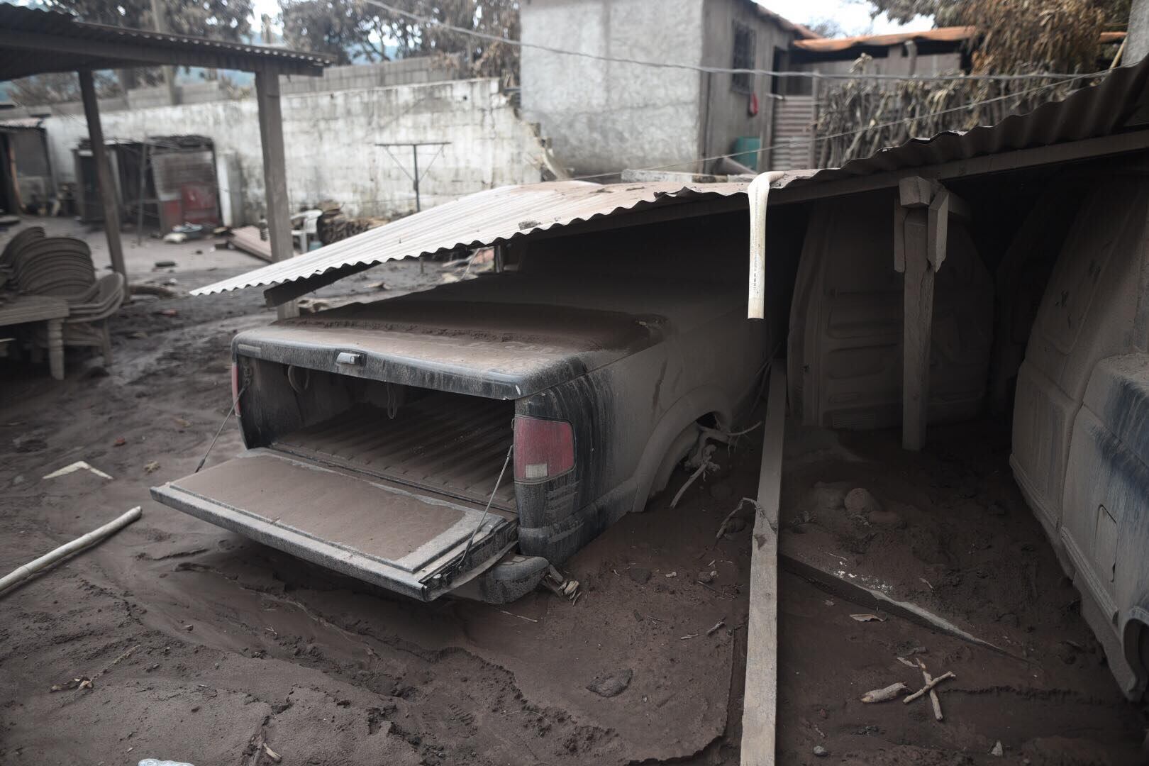 Los vecinos de San Miguel Los Lotes han tenido que excavar para ubicar sus viviendas, y las que no están soterradas por completo muestran la destrucción que dejó a su paso los flujos piroclásticos que descendieron del volcán de Fuego a más de 60o grados centígrados.