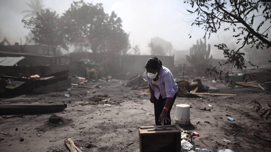 Las calles de la aldea El Rodeo, Escuintla, se mantienen desoladas; sin embargo, cuando empieza a calentar el sol los propietarios se acercan de nuevo a sus viviendas, algunos para cuidar a sus mascotas y otros porque han decidido desalojar y han llegado a recoger las pertenencias que les han quedado. Ellos evacuaron el domingo 3 de junio debido a la erupción del volcán de Fuego.