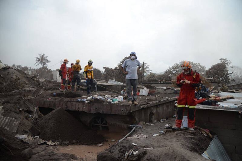 Vivo solo con mi esposa, pero como estábamos alquilando no nos aceptan en albergues, ahora nos estamos quedando en Escuintla, pero muchas de nuestras cosas las perdimos con la erupción del volcán”, menciona “Bones”, mientras evalúa un patio de una casa junto con elementos de los Bomberos Voluntarios.