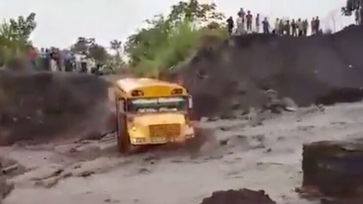 Los medios locales informaron que el piloto fue evacuado del autobús y al bajar la corriente, algunas personas ayudaron a extraer el vehículo del río.