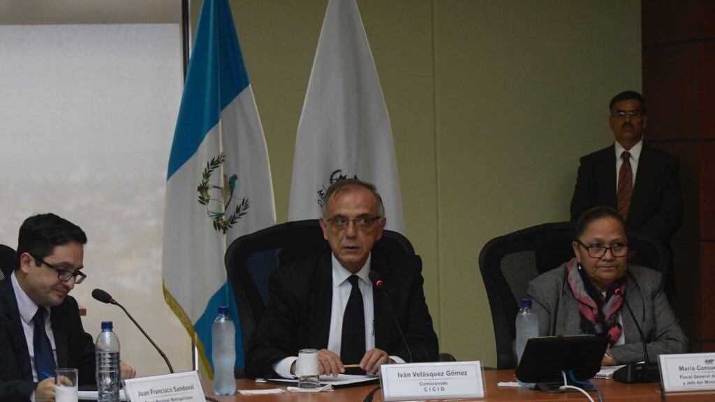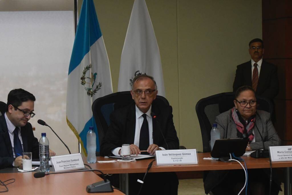 En la conferencia de prensa estuvieron presentes la fiscal general María Consuelo Porras, el jefe de la Cicig, Iván Velásquez Gómez y los fiscales del MP Juan Francisco Sandoval y Óscar Schaad.