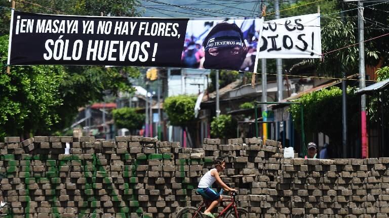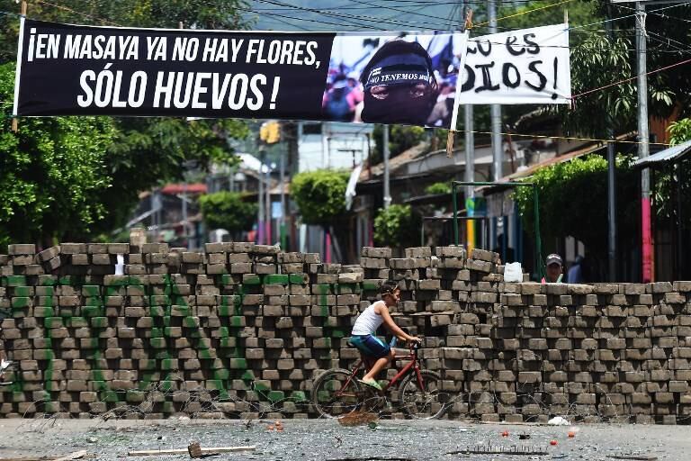 Muros de adoquines y casas quemadas se pueden observar en la combativa ciudad de Masaya, en el sur de Nicaragua, que resiste al asedio de las fuerzas del gobierno de Daniel Ortega, en una escalada de violentas protestas que dejan 187 muertos en dos meses.