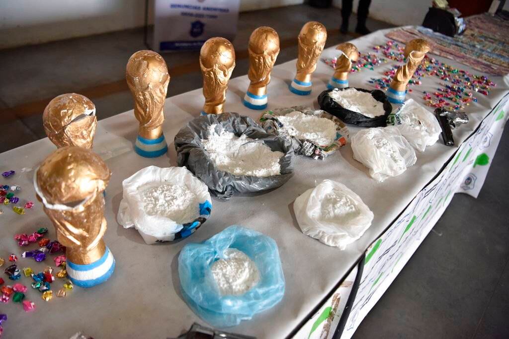 La policía de la provincia de Buenos Aires desmanteló una organización que traficaba cocaína en el interior de imitaciones de trofeos del Mundial, cada uno de los cuales contenía un kilogramo y medio de la droga.