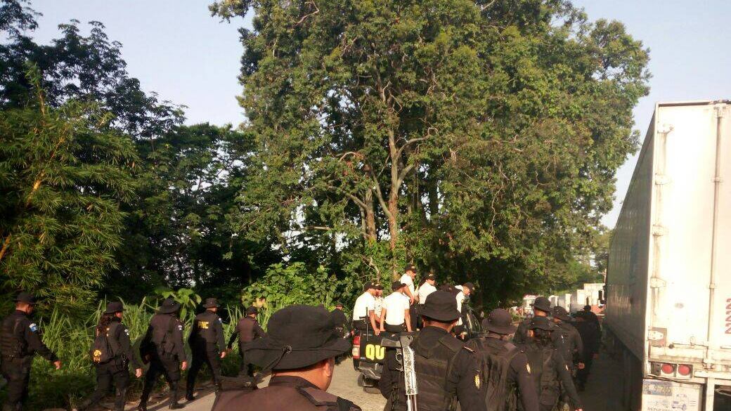 Este viernes fueron desplegados elementos de la Policía Nacional Civil (PNC) al kilómetro 216 de la ruta CA-2, en seguimiento al bloqueo que mantienen los pobladores desde hace más de 50 horas.