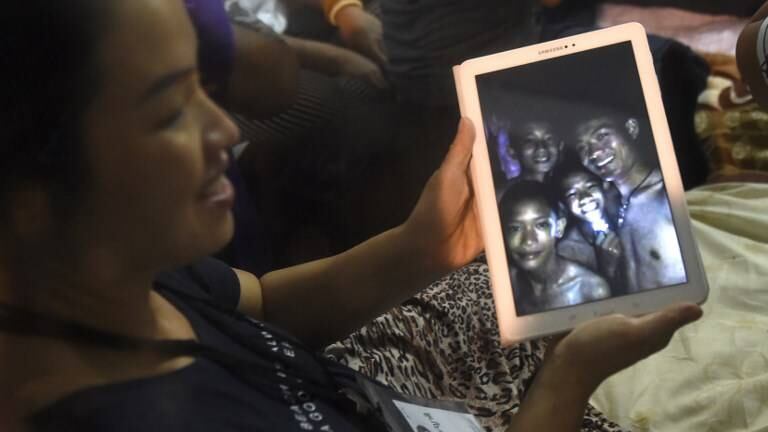 "Estoy tan feliz… Quiero verlo, en buen estado físico y mental", dijo a la AFP Thinnakorn Boonpiem, padre de uno de los desaparecidos.
