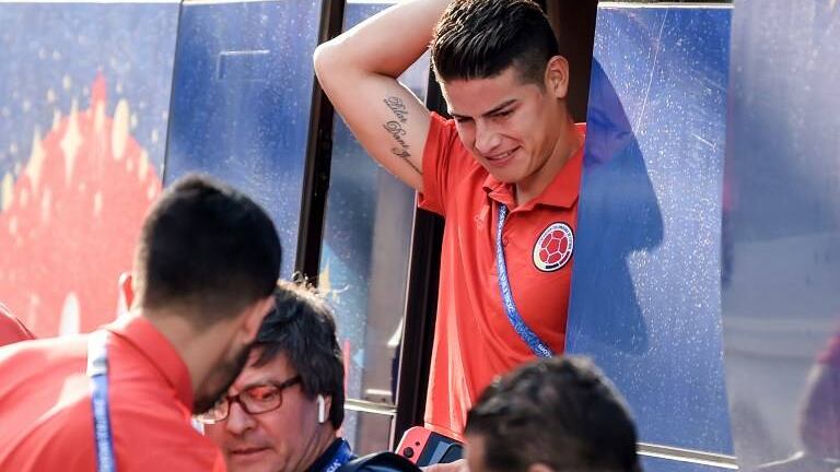 El centrocampista colombiano James Rodríguez no se recuperó a tiempo de una lesión y ni siquiera entró en la convocatoria de su equipo, este martes en Moscú, en el partido de octavos de final del Mundial de Rusia 2018 ante Inglaterra.