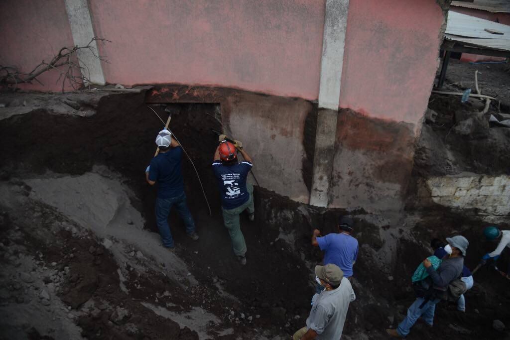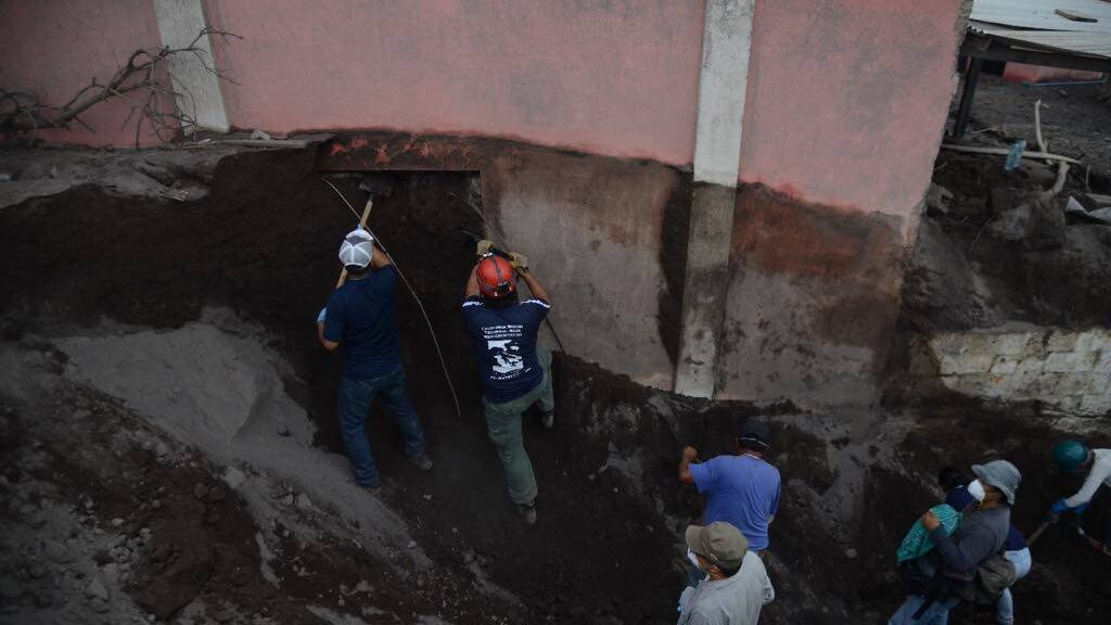 Integrantes de la organización Antigua al Rescate y pobladores trabajan en el sector conocido como “callejón principal”, en donde prevén que puedan localizarse decenas de cuerpos de víctimas de la tragedia.