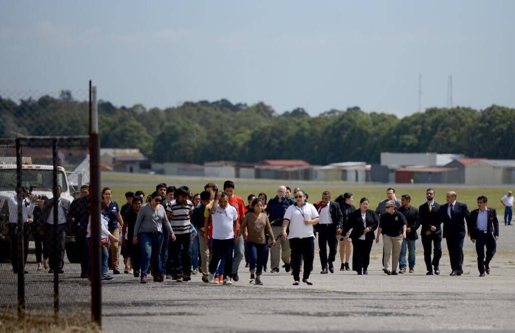 El vicecanciller Jairo Estrada explicó este lunes en una rueda de prensa que el grupo arribaría al Aeropuerto Internacional La Aurora, donde sería recibido por personal de la Secretaría de Obras Sociales de la Esposa del Presidente (SOSEP).