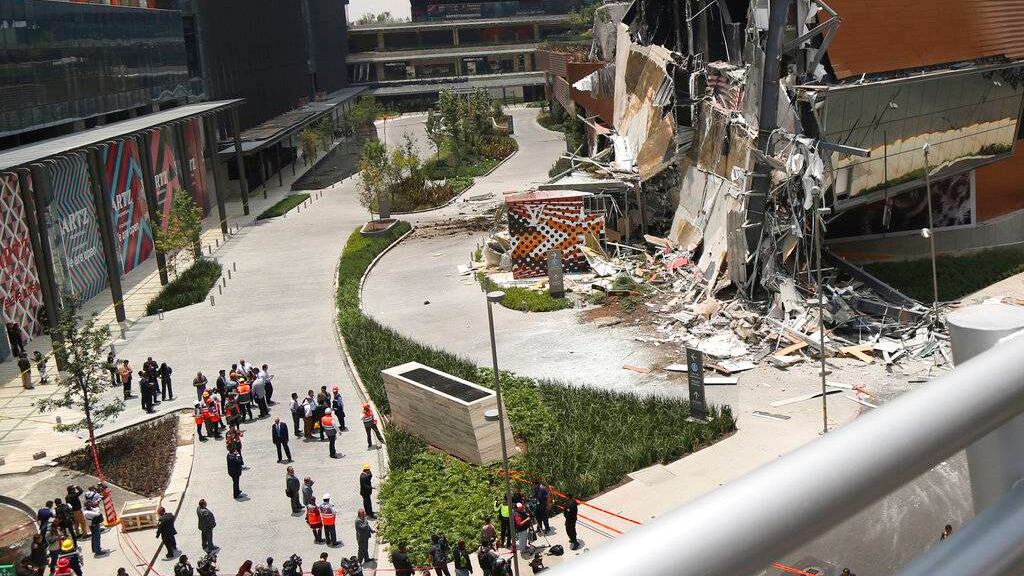 Un centro comercial relativamente nuevo y situado en una zona acomodada del sur de la Ciudad de México se derrumbó parcialmente el jueves sin ocasionar víctimas y ante la mirada de muchas personas que habían sido evacuadas previamente y grabaron la caída del edificio con sus celulares.