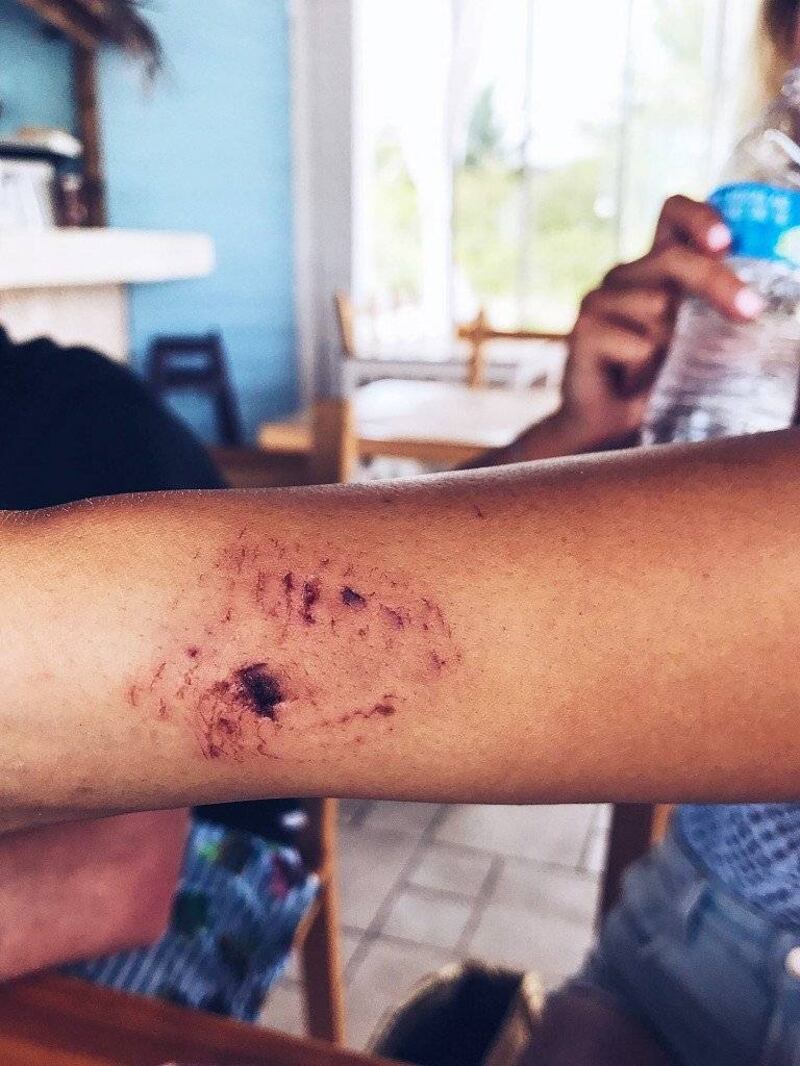 Katarina resultó con una herida en su brazo y decidió compartir esa experiencia con sus seguidores: