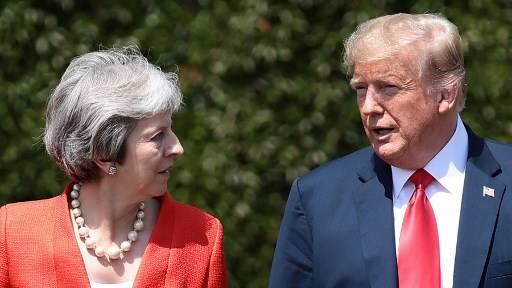 "Acordamos que cuando el Reino Unido abandone la Unión Europea, perseguiremos un ambicioso acuerdo de libre comercio" tras la salida británica de la Unión Europea, dijo May ante un presidente estadounidense que negó después haber criticado a la primera ministra en la entrevista en The Sun.