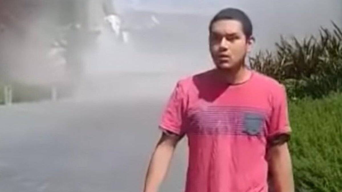 La toma enfoca la espalda de una de las personas que estaba en la zona, cuando lo rodea aparece el sujeto de playera roja que no aparecía en alguna de las imágenes previas.