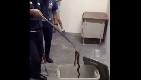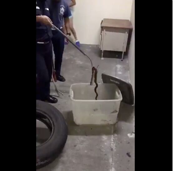 "Luego de trabajar durante más de 20 minutos logramos rescatar, sin ningún rasguño, a la serpiente denominada mazacuata", dijo David Yancor, de ese cuerpo de socorro.