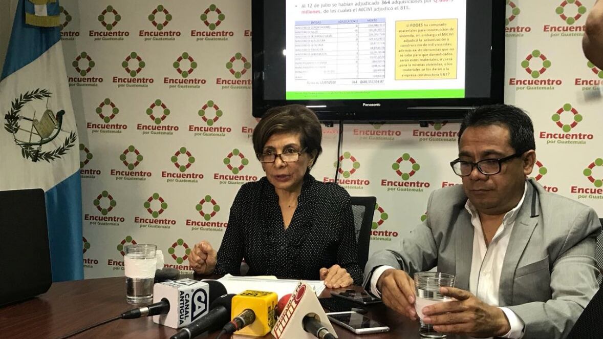 La diputada de Encuentro por Guatemala indicó que existen dudas sobre la adjudicación de los contratos, ya que se adjudicó la construcción de las viviendas mientras que al mismo tiempo se adquirió material para construcción.