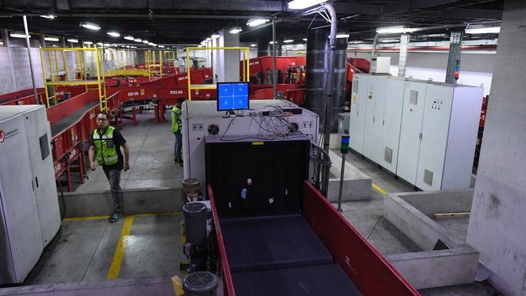 Este consiste en un mecanismo con estructura tipo tobogán para deslizar las maletas desde el tercer nivel hacia el sótano, para la revisión de rayos X, y posteriormente llevarlas a los aviones.