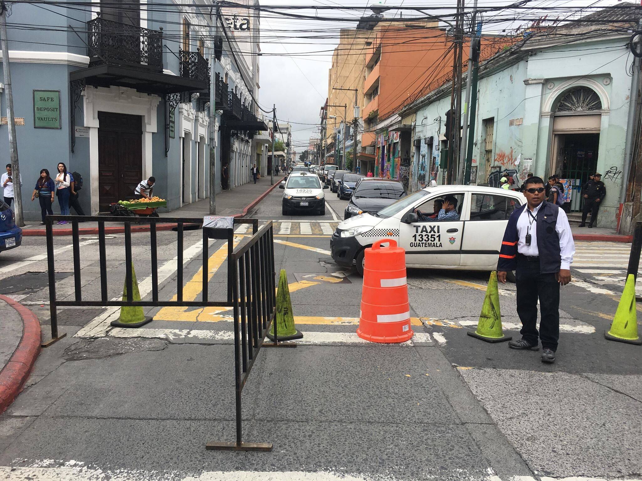 Personal de la Secretaría de Asuntos Administrativos y de Seguridad de la Presidencia (SAAS) cerró el paso en diferentes puntos de la zona 1: