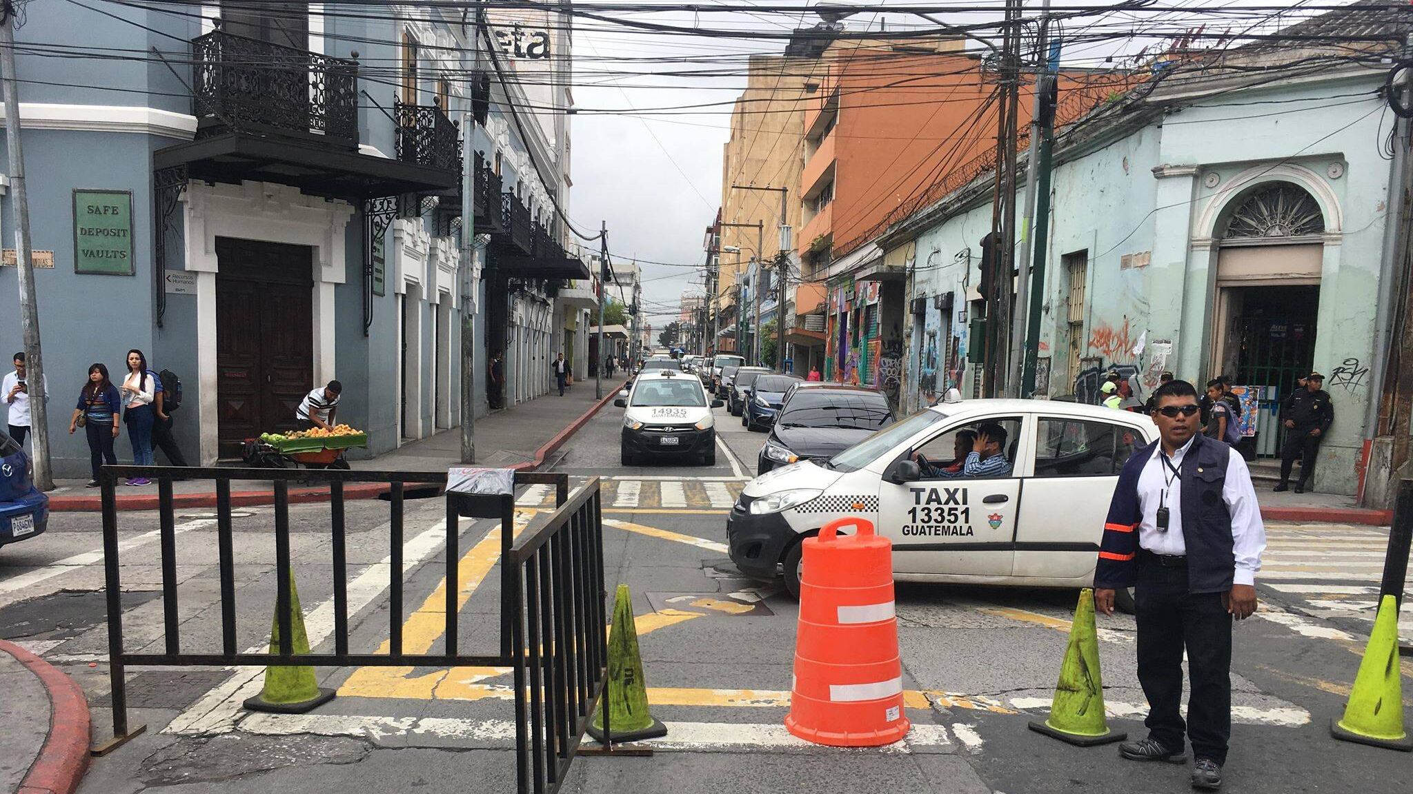 Amílcar Montejo, intendente de la Policía Municipal de Tránsito (PMT) de la Ciudad de Guatemala, dio a conocer que desde tempranas horas de este lunes se mantienen cierres vehiculares en el perímetro de la Casa Presidencial y el Palacio Nacional.