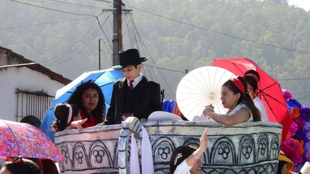 Diferentes establecimientos educativos, autoridades municipales, bomberos voluntarios y vecinos participaron en el desfile alegórico que recorrió las calles empedradas de la ciudad colonial.