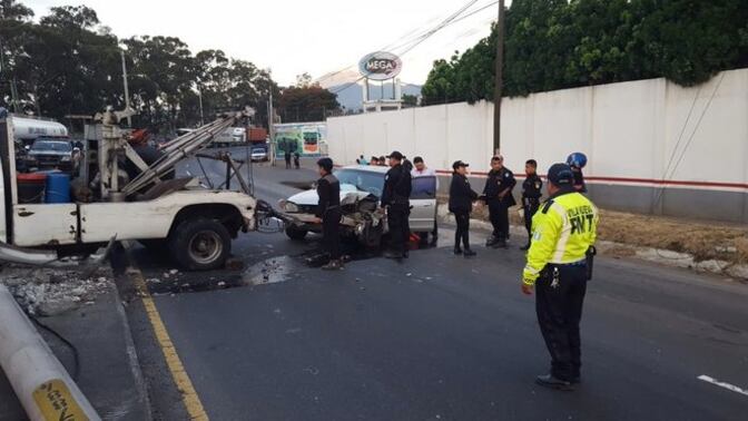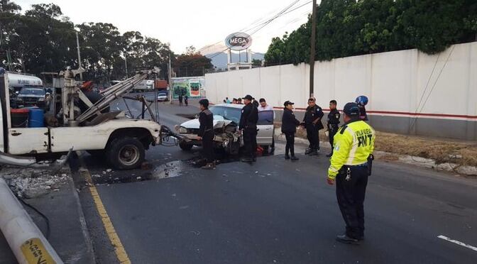El conductor de un vehículo tipo sedán colisionó contra un poste de alumbrado público en el kilómetro 15.5 de la ruta al Pacífico.