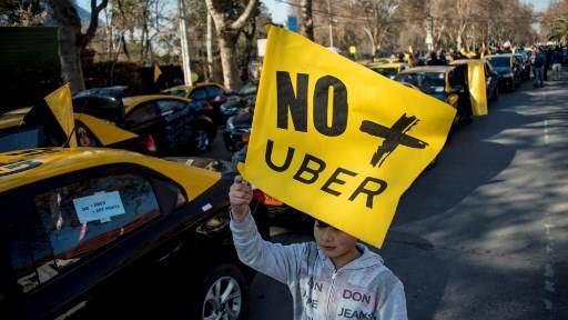 Sonando sus bocinas y ondeando banderas chilenas, miles de taxistas chilenos protestaron este lunes por el centro de Santiago contra la denominada 'Ley Uber', mediante la cual el gobierno pretende legalizar el servicio de las aplicaciones de transporte de pasajeros.