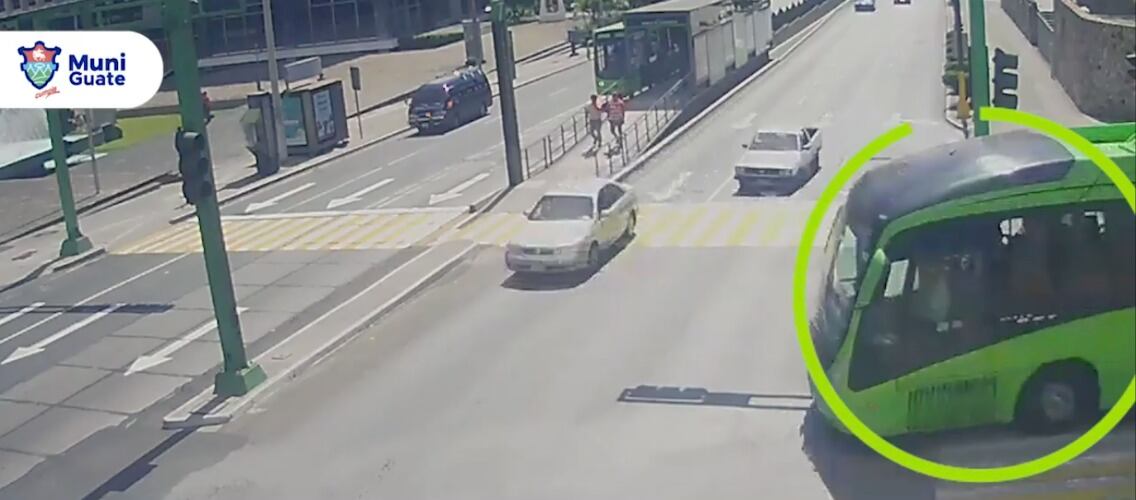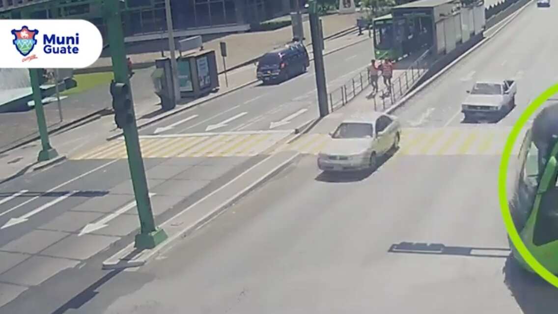 La Municipalidad de Guatemala compartió el video de una colisión entre una unidad del Transmetro y un vehículo que no respetó las señales de tránsito.