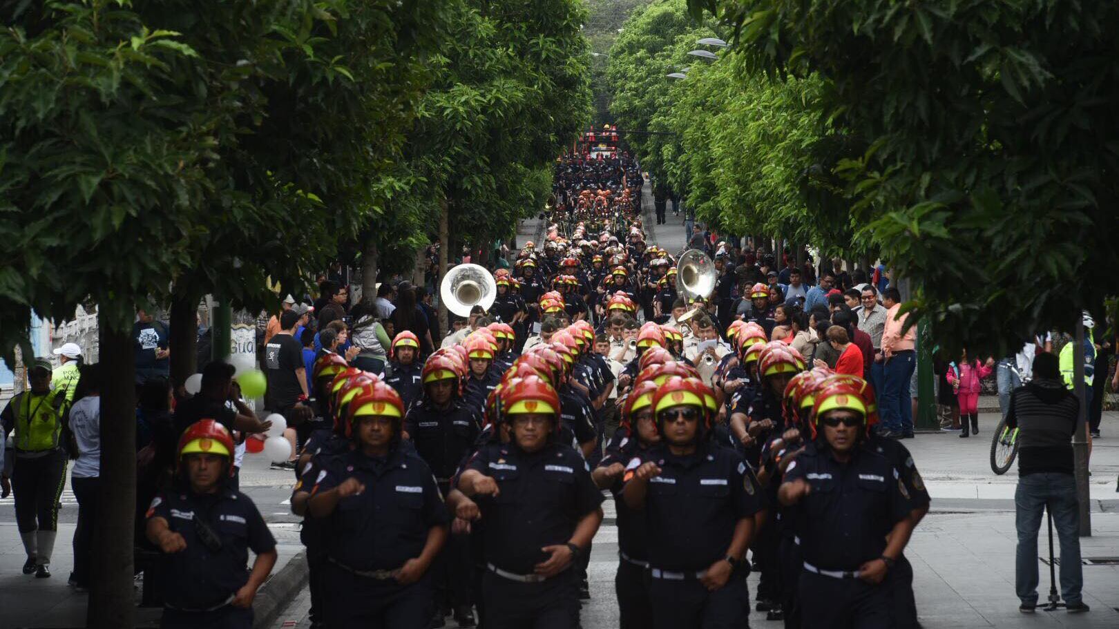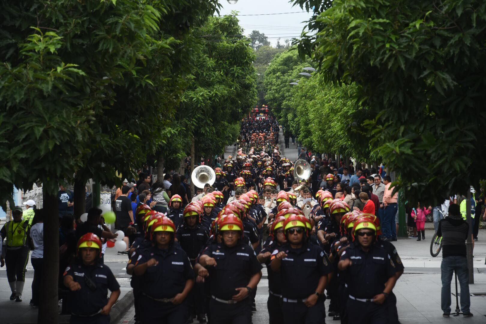 Cerca de 700 elementos participaron del desfile, representando a la casi todas las especialidades con las que cuenta la institución como los Técnicos en Urgencias Médicas (TUM), instructores, de materiales peligrosos y hasta aspirantes.