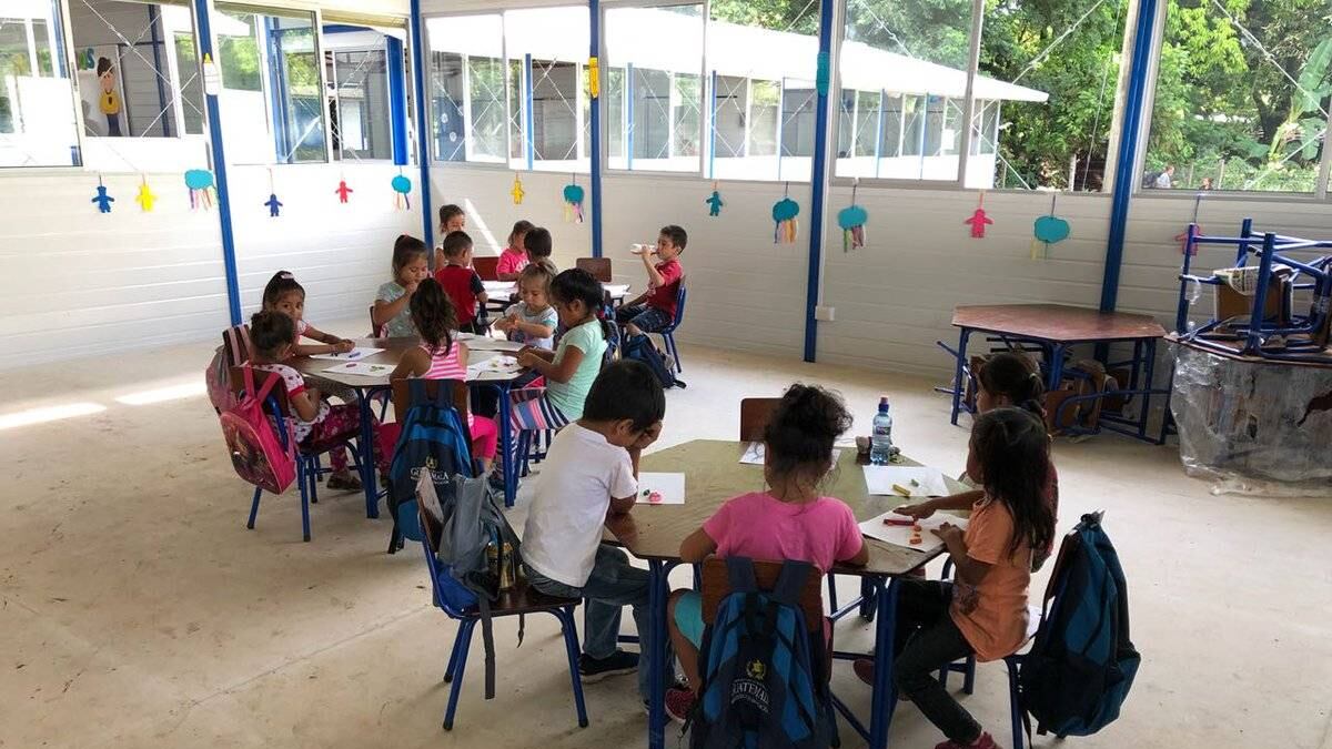 En un anexo del área en donde se construyeron los Albergues de Transición Unifamiliares -ATU´s, se instalaron 27 módulos para el desarrollo de las actividades educativas. Los alumnos anteriormente recibían clases en carpas instaladas en el estadio municipal de Escuintla.