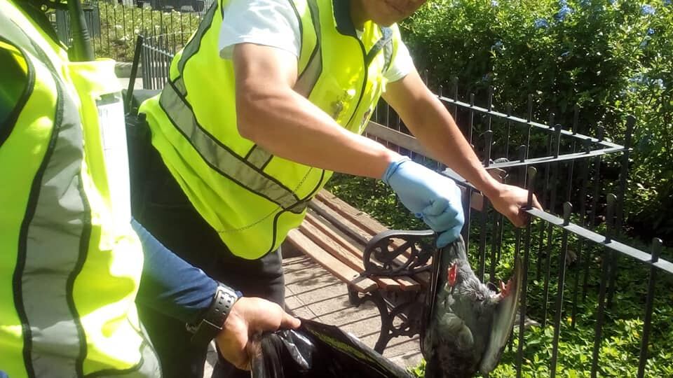 Agentes de la Municipalidad de Antigua Guatemala, en Sacatepéquez, localizaron en la mañana de este sábado 11 de agosto un total de 11 palomas muertas.