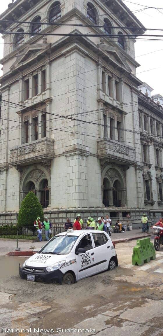 Un taxista decidió no respetar la señalización por trabajos municipales en la 5 calle y 7 avenida zona 1, frente al Palacio Nacional de la Cultura.