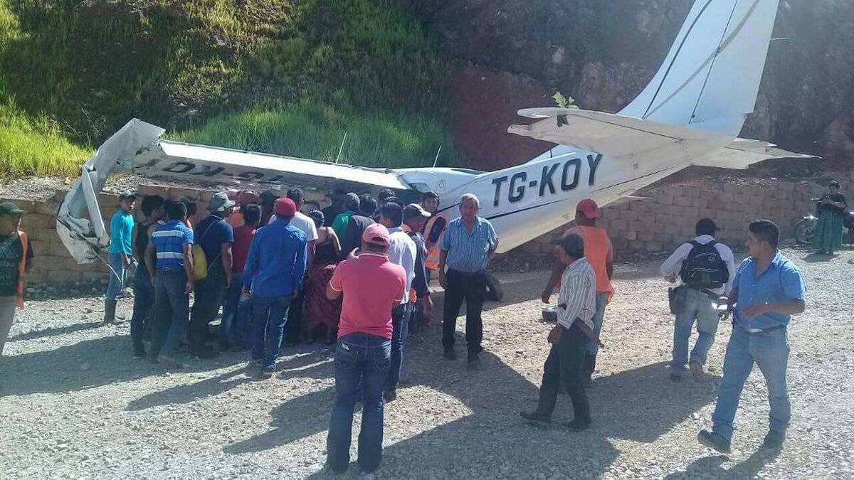El piloto de una avioneta llevó a cabo este martes un aterrizaje de emergencia en la aldea Campur, municipio de San Pedro Carchá, Alta Verapaz. Socorristas confirmaron que no hay personas heridas.