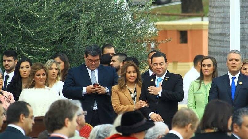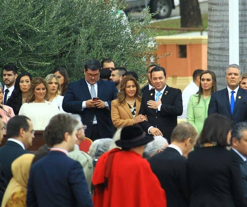 El presidente Jimmy Morales en compañía de su esposa, Patricia Marroquín de Morales, escucharon el juramento que Mario Abdo Benítez hizo como nuevo mantadario de Paraguay.