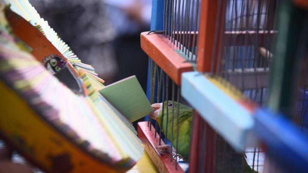 Los pajaritos sacan papelitos de la suerte, como tipo horóscopos", asegura López.