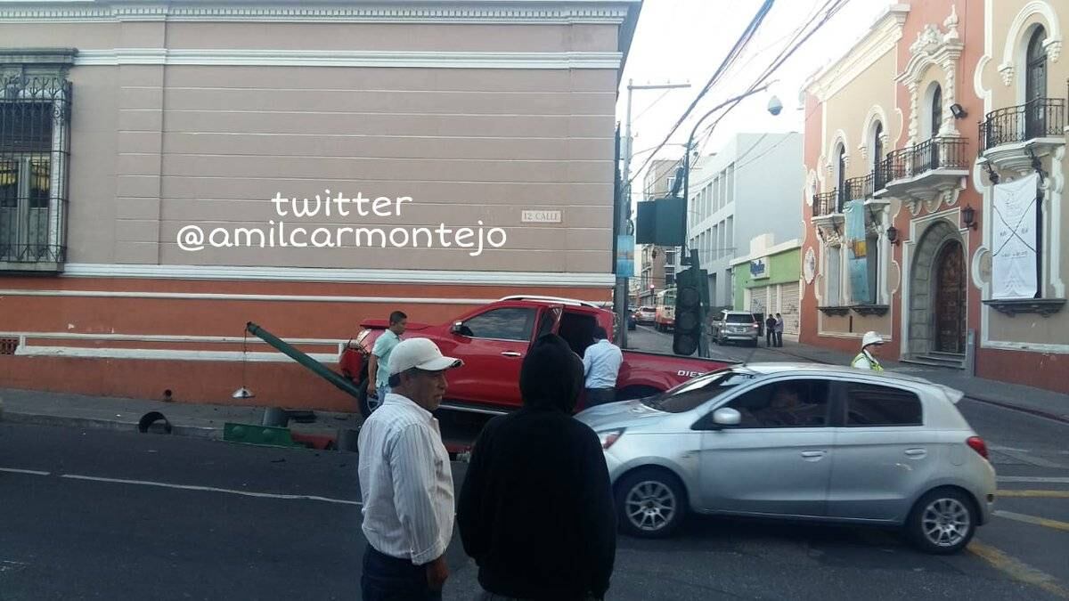 Un incidente de tránsito se registró en horas de la mañana de este jueves en la 7ª avenida y 12 calle de la zona 1 capitalina y como resultado quedó un semáforo derribado.
