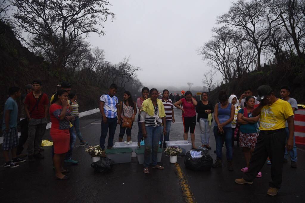 Algunas cajas de plástico acompañadas con flores y veladoras fueron apostadas a la mitad de la carretera. Estas contenían restos humanos de familiares de algunos de los vecinos.