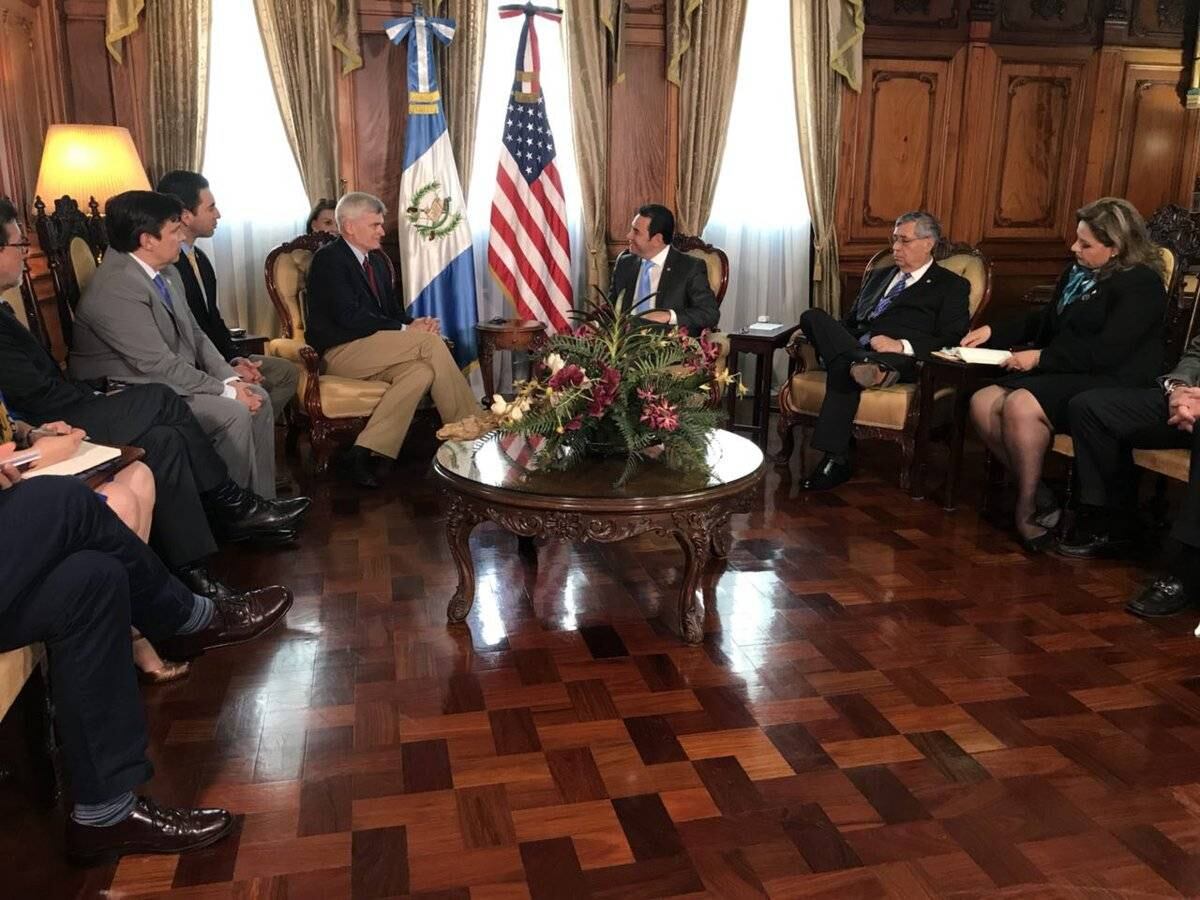 El presidente Jimmy Morales se reunió este viernes con congresistas estadounidenses que se encuentran realizando una visita en Guatemala para abordar diversos temas, incluida la lucha contra el narcotráfico.