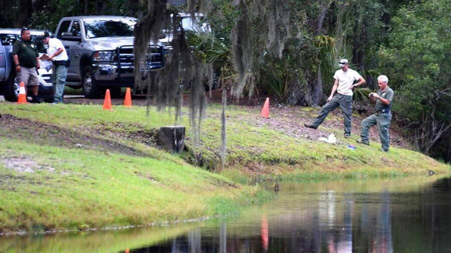 “Paseaba a su perro cerca de la laguna y el caimán salió del agua e intentó llevarse al perro”, dijo Lucas. “La mujer intentó rescatar a su perro y un empleado de mantenimiento corrió para ayudar”.