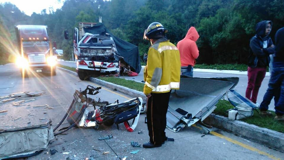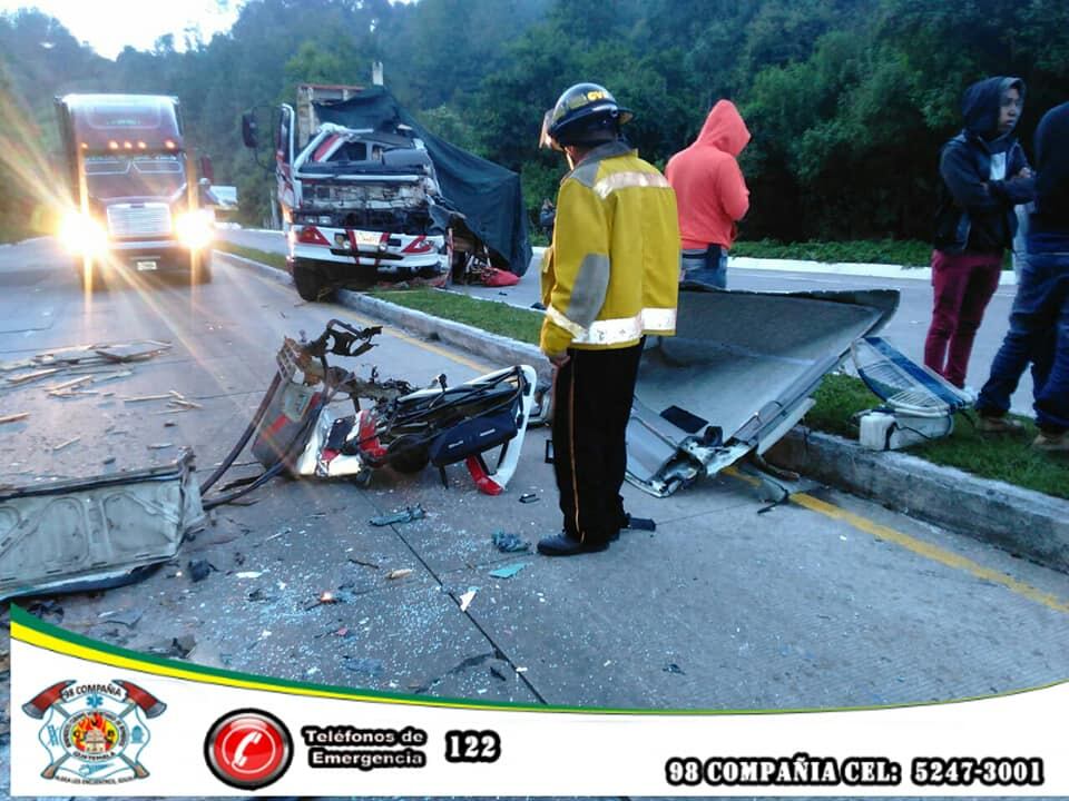 Un camión se estrelló esta mañana contra la plataforma de un tráiler en el kilómetro 109 de la carretera Interamericana, en jurisdicción del cantón Chupol, del municipio de Santo Tomás Chichicastenango, Quiché.